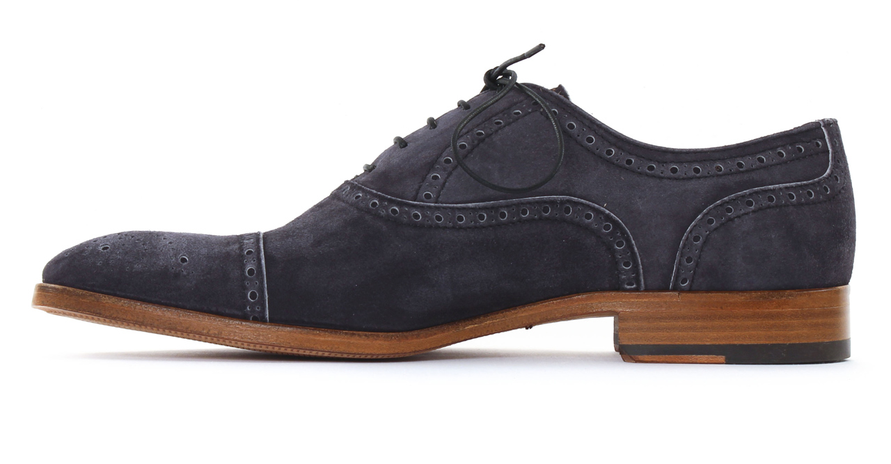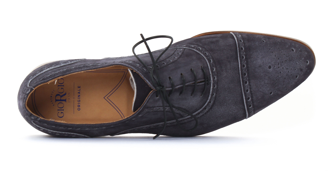 Chaussures de marque GIORGIO 1958 style richelieu homme de couleur bleu jean. Richelieu moderne, la mode chic à l'italienne, chaussures de ville cousue Blake, tige en cuir suédé de qualité supérieure, un travail sur la couleur pour un magnifique rendu bleu jean très tendance.